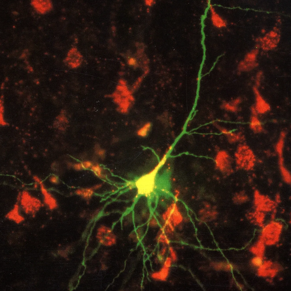 Further details are presented in: Katz, L.C., Burkhalter, A., and Dreyer, W.D. Fluorescent latex microspheres as a retrograde neuronal marker for in vivo and in vitro studies of visual cortex. Nature 310: 498-500 (1984), and Katz, L.C. and Iarovici, D.M. Green fluorescent latex microspheres: a new retrograde tracer. Neuroscience 34: 511-520 (1990).